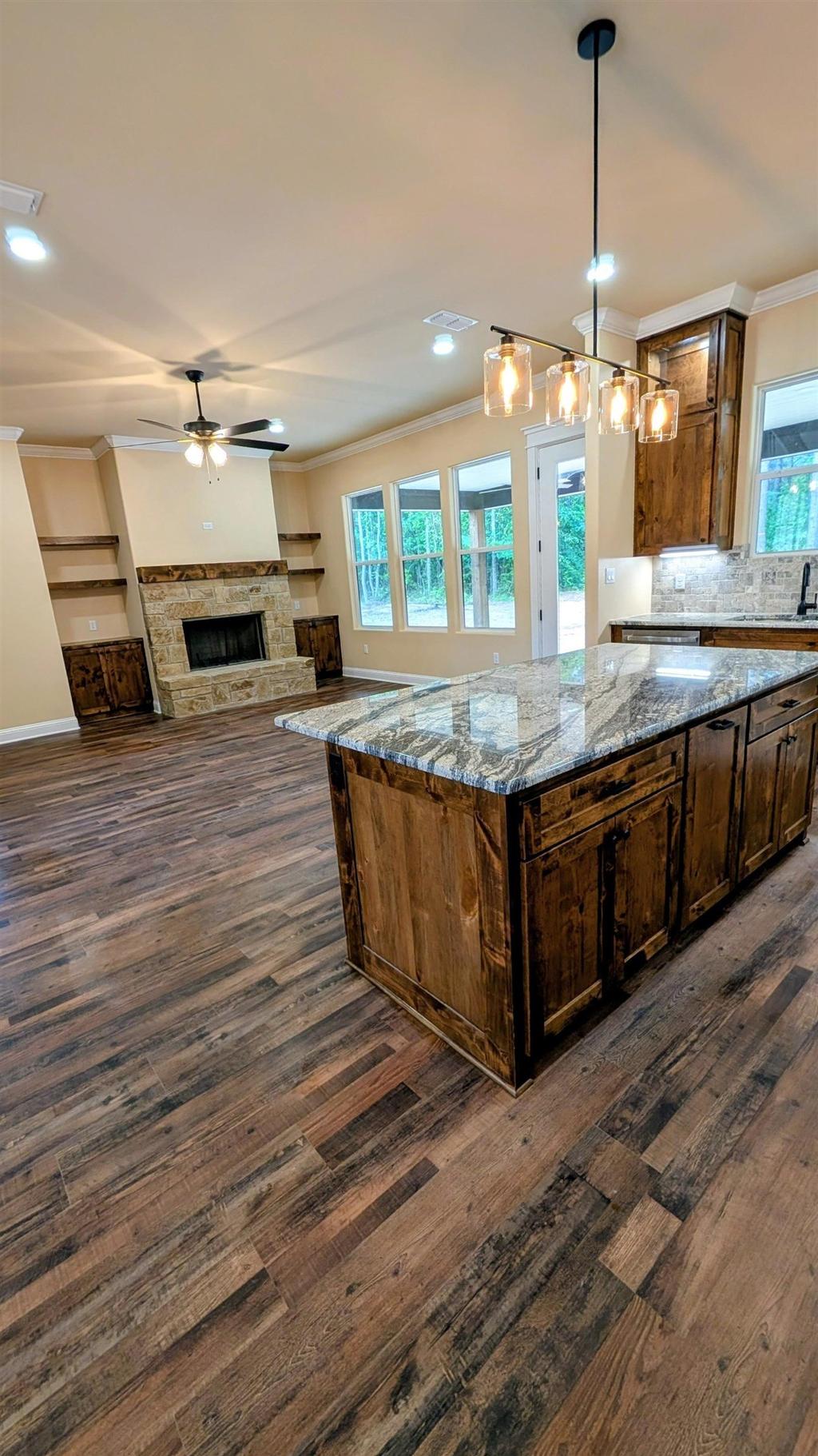 Country Living in a Beautiful setting of new homes in Stonebrook Subdivision that is 11 miles from Longview, Texas. 4 BDR and 2 baths. 2 car garage Granite countertops Tile showers Vinyl floors This home is an open yet cozy floor plan. Starting at the entry of the garage, there''s a mud bench beside a spacious laundry room. The cabinets are a beautiful wood finished that compliments the granite counter tops. In the kitchen you''ll find a walk-in pantry, a large island that can seat up to 6 people, and large cabinets that have a light finish that brightens the room. The fireplace is wood burning and built with rock up to the large mantel. Includes a linen closet in the hall, a large covered back-porch with ceiling fans. The hall bathroom has shower with a tub, double sinks, and large cabinet space for storage. The guest bedroom contains a ceiling fan and built-in closet storage. The Master bedroom''s bathroom contains double sinks, a walk-in shower , a oversized walk-in closet, stand alone tub, and a privacy room that contains the toilet.