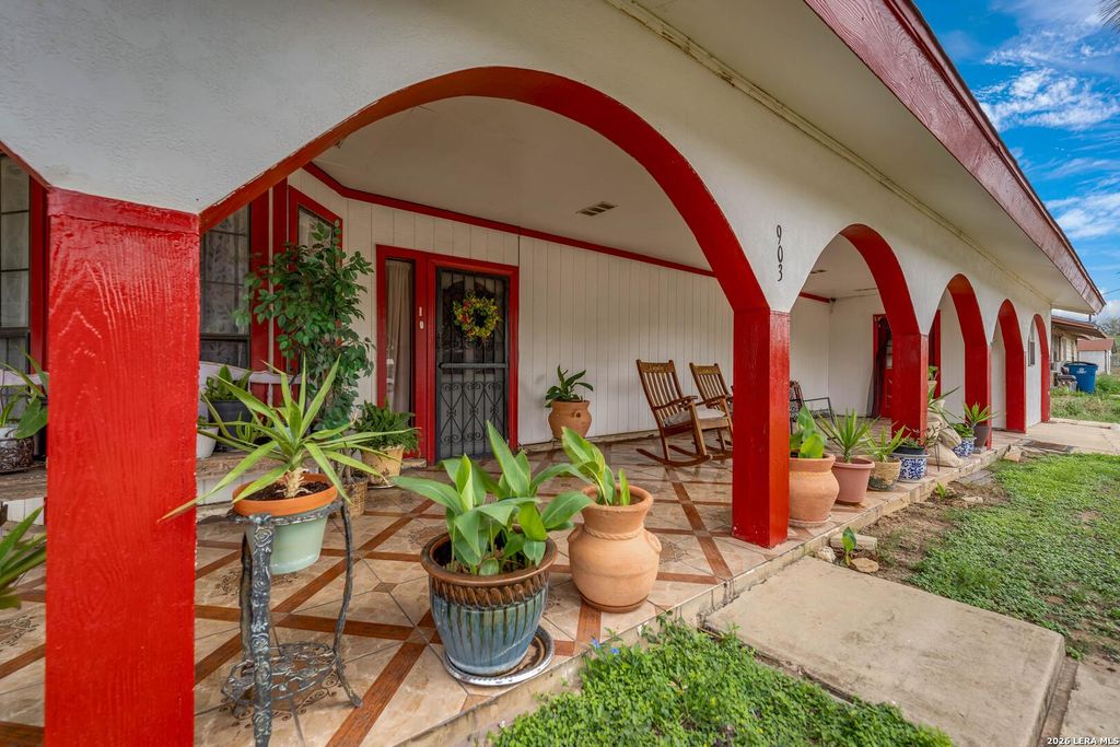 Located in the heart of Poth, Texas, this warm and welcoming two-story property is filled with character, charm, and endless possibilities-all while embracing true small-town charm and close proximity to local conveniences. A large, inviting front porch sets the tone for this cozy, feel-at-home property-perfect for morning coffee or relaxing evenings. Inside, you're greeted by vibrant yet tasteful colors, abundant natural light, and a comfortable, lived-in feel that instantly makes you feel at home. The spacious, open-concept living area flows effortlessly into the dining space and thoughtfully designed kitchen, where a generously sized island becomes the heart of the home-ideal for cooking, gathering, and entertaining. The main level features a private and serene primary suite, complete with an additional 9x9 flex space that offers endless possibilities-whether you envision a dreamy walk-in closet, nursery, reading nook, or private office. Two additional bedrooms and another versati