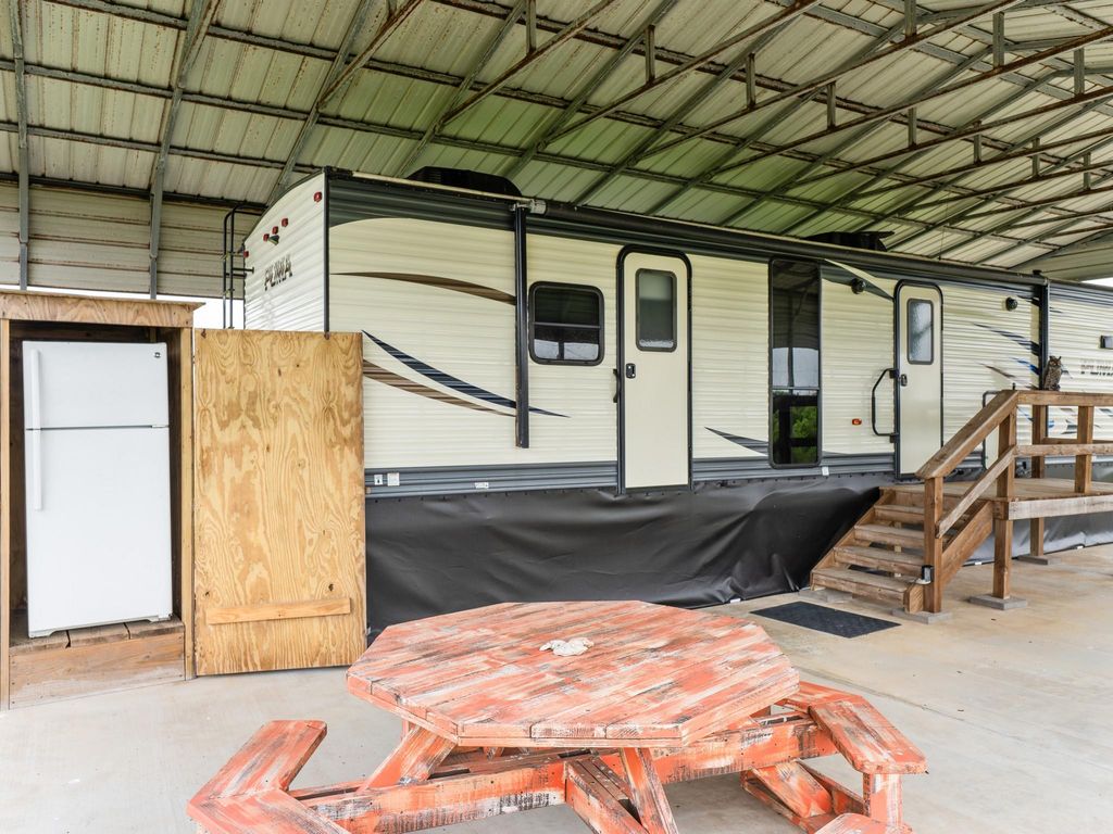 RV INCLUDED! Two spacious off water lots right in the heart of Sargent, Tx. This property has everything you need to have your very own vacation spot just in time for summer. 2019 bumper pull camper that has been very well maintained, sits under a 2014 built RV cover with full hook ups. Lot 2 also has its own water tap in place! Also included - storage building to store your fishing gear and lawn equipment, full size refrigerator in outside of camper.