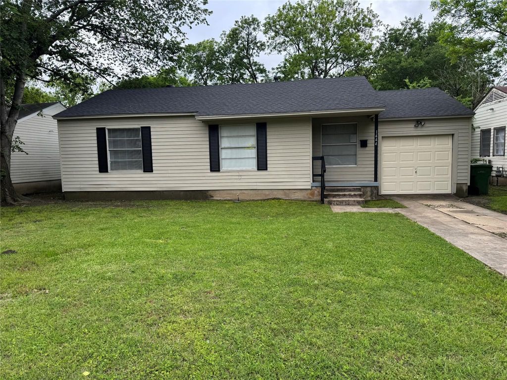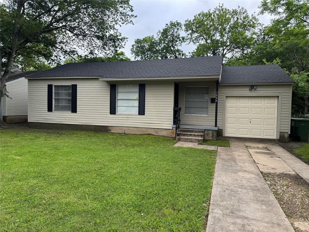Move in ready 2 bedroom, one bath, one car garage home in established Garland neighborhood. New roof, new garage door, new hot water heater, new electric range and dishwasher. Fresh paint and vinyl plank flooring throughout. Chain link fenced back yard with large storage shed.