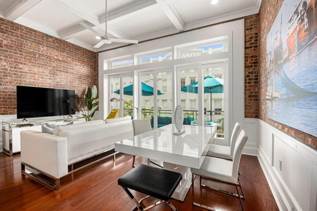 Experience elevated luxury at the highly sought-after Post Office Street Condos. Located in the historic former JC Penney building, this stunning residence blends historic charm with modern sophistication. Fully renovated with exceptional attention to detail, this impressive 1-bedroom, 1-bath condo features designer finishes, exposed brick walls, tall ceilings, and a wall of windows with triple sliding doors that provide access to a private 120 sq ft balcony overlooking Galveston’s Arts District. Restaurants, shopping, and galleries are just right outside your door. This has everything you'd want in downtown living. Residents enjoy enhanced security with coded entry into a sleek foyer with elevator access, private storage, and secure off-site parking just steps away. This property offers exceptional luxury in a prime location- With one of the lowest HOA fees on the island. Opportunities like this are rare—schedule your private showing today.