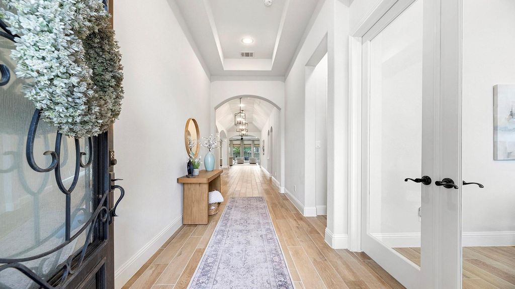 Modern Mediterranean one-story in the sought-after Sienna community by Perry Homes offers 4 bedrooms and 3 baths in a spacious open layout perfect for gathering and everyday moments. The kitchen with custom cabinetry and stainless-steel appliances flows seamlessly into the main living area, keeping everyone connected. A private office and flex room with French doors provide space for homework, play, or hobbies. The primary suite offers a relaxing retreat with a spa-like bath and large walk-in closet. A guest suite with its own bath plus two additional bedrooms give everyone their own space. Enjoy a covered patio, generous backyard for playtime, a laundry room with mudroom, and close proximity to parks and the community recreation center. Beautifully crafted and move-in ready, this home combines comfort, functionality, and space for making lasting family memories.