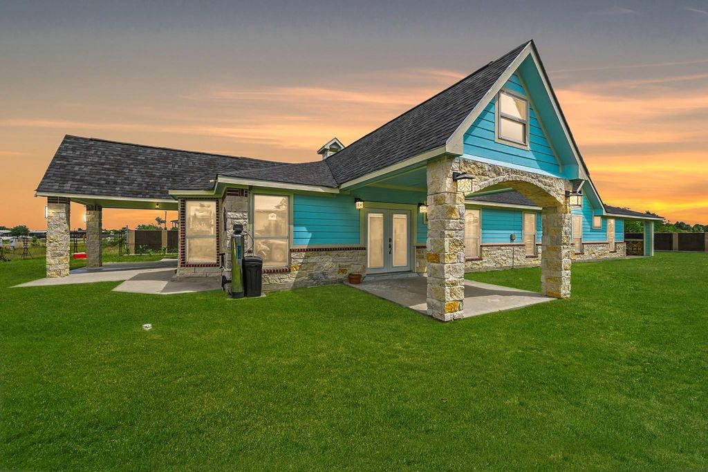Stunning 5-bed, 5-bath home set on a 10,019 sqft lot, offering space, style, and a peaceful setting. The exterior showcases beautiful stone and brick with a striking front gable and welcoming porch. Inside, enjoy a bright, open layout with a spacious living area filled with natural light and seamless flow into the dining space and kitchen. The kitchen features rich wood cabinetry, sleek countertops, stainless steel appliances, double ovens, and a breakfast bar—perfect for everyday living and entertaining. The primary suite is a true retreat with spa-like bath, elevated soaking tub, and striking stone finishes, plus a custom walk-in closet. Step outside to a large backyard and extended covered patio designed for gatherings and relaxation. Surrounded by open space and large lots, this property offers privacy, comfort, and room to grow.