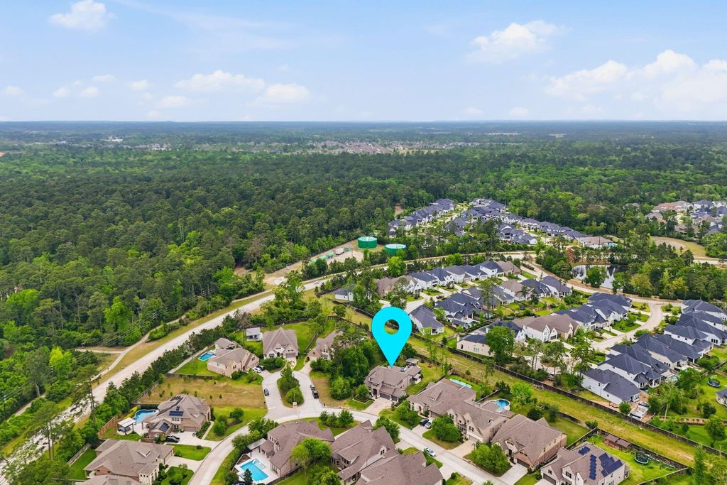 Beautiful Westin home in The Woodlands Creekside Park West on premium lot with no side/back neighbors. Zoned to top-rated schools. This 4 bed, 3.5 bath features grand foyer with 8-ft double doors, tiered rotunda and curved wrought iron staircase. Private study and formal dining on the first floor. Open island kitchen with butler’s bar, built in ice maker, 36" gas cooktop, quartz counters and apron sink. Spacious primary suite with spa-like bath, soaking tub, separate shower and custom walk-in closet. Upstairs offers 3 secondary bedrooms, 2 full baths, game room and media room. Oversized 3-car garage with epoxy floors and built-ins. Backyard retreat with pool/spa, heater/chiller, in-floor cleaning, fire bowls, waterfall, outdoor kitchen, fireplace, misting system, and multiple seating areas. Extensive upgrades include custom pantry and laundry, high-end lighting, plantation shutters, whole-home Generac generator, electric shades, central vacuum, smart home features, security system