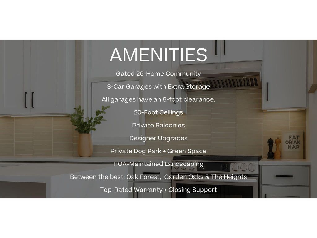 Experience life at Thornton Oaks, a gated community ideally located between Oak Forest, Garden Oaks, and The Heights. This thoughtfully designed floor plan offers 3 bedrooms, including a convenient first-floor guest suite. Enjoy a light-filled open layout on the second floor featuring a stylish kitchen with an oversized island and beautiful cabinetry, perfect for entertaining or relaxing at home and a private balcony. On the third floor is the luxurious primary suite with a spa-inspired bath and a large walk-in closet for ultimate comfort. An additional secondary bedroom completes this space. With a spacious 3-car garage, a private dog park, and flexible living spaces, these homes blend function and style seamlessly. Located near Houston’s best dining, shopping, and major freeways, Thornton Oaks delivers modern living in an unbeatable location.