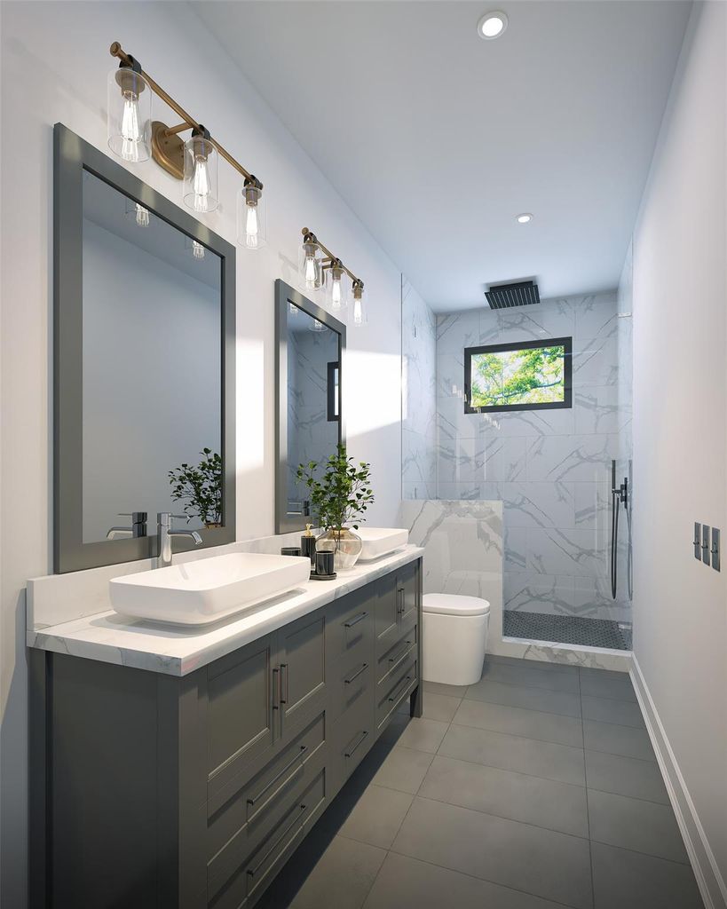 This brand new, two-story duplex offers a sleek, contemporary lifestyle. Each unit is designed for comfort and style, featuring 3 spacious bedrooms and 2 luxurious uxurious bathrooms. Step inside to find bright, open-concept living areas with beautiful floors, large windows that flood the space with natural light, and high-end finishes throughout. The gourmet kitchen boasts an island with seating, perfect for entertaining, and light-toned cabinetry and countertops. Both the kitchen and living room feature views of the outdoors. The stylish bathrooms, including one with a double vanity and a stunning walk-in shower, offer a spa-like retreat. Enjoy the convenience of modern construction near the heart of Houston, providing easy access to local amenities and city life. This property offers the perfect blend of suburban tranquility and urban accessibility. Schedule your showing today!