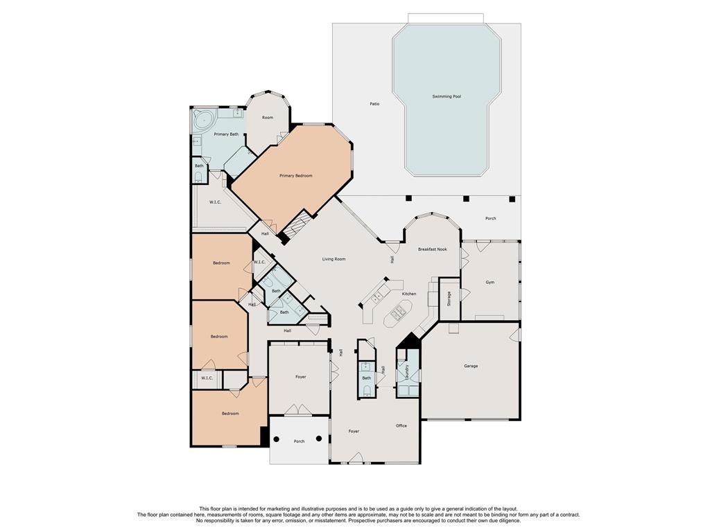 This ONE STORY beauty sits on gorgeous property that includes a pool and patio, enlarged deck and tons of green space! Home is a spacious 4 bedroom, 2.1 bath, and has a bonus room (sunroom) with French doors , large Kitchen with ss appliances, Breakfast area and Dining Room. The Primary wing is located in the back of the home with a sitting area, and second bonus area that can be a study or reading nook. You will love the Primary bath with an oversized shower, large tub and giant closet! The Study is located in the front of the home and has two sets of French doors- one out to the main hallway, and another out to a private patio. Across from the Study is the Dining room close to the kitchen. In a separate hallway are 3 spacious secondary bedrooms and bath. The back yard is just amazing and so private! Upgrades include all back windows replaced, recent AC Condenser and 2 Evaporators,Pool/patio expansion and interior paint.Come and take a look at this BEAUTIFUL 1 story!