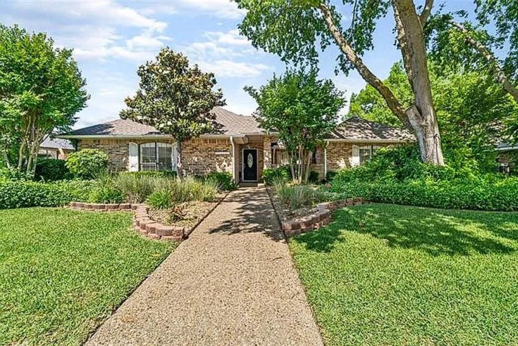 Welcome to this beautifully updated one-story home in West Plano, complete with a sparkling pool and spa—perfect for comfortable living and effortless entertaining. The thoughtfully designed floorplan features four bedrooms and three full baths, smartly split for privacy. At the heart of the home is an updated, open-concept kitchen that flows seamlessly into the living and dining area. Luxury vinyl plank flooring, a striking beamed ceiling, and expansive pool views create an inviting first impression. The kitchen is both stylish and functional, offering extended white cabinetry, a farmhouse sink, stainless steel appliances including a gas range, quartz-style surfaces, and a generous island with bar seating for six. The dining area easily accommodates a large table, while the spacious living room centers around a stunning white stone fireplace—ideal for gathering with family and friends. Refrigerator, washer, and dryer are included for added convenience. All bedrooms are generously sized with ample closet space and built-ins throughout. Walls of windows fill the home with natural light and showcase the remodeled pool, updated decking, and grassy yard—perfect for kids, pets, and outdoor entertaining. A covered patio provides the ideal spot for grilling and relaxing. Situated in an established neighborhood near top-rated schools, scenic hike-and-bike trails, and the highly desirable Park and Preston corridor, this home offers easy access to shopping, dining, and everyday conveniences.