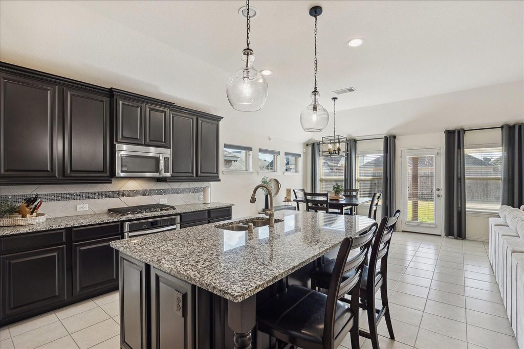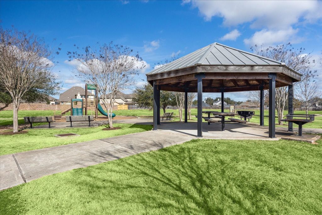 This right-sized one-story is not only beautiful, but it also offers an excellent floor plan and a location that can't be beat! You will love the open concept with generous room sizes, soaring ceilings, lots of natural light, and neutral finishes. It's a 3/2/2 with a study that could be converted to a 4th bedroom. This home has been lovingly-maintained and it's move-in ready for you. There's an EV plug in the garage, radiant barrier in the attic, and the AC components are recent. The condenser is 16 SEER for energy efficiency. You have an attractive brick & stone elevation and a nice covered patio in back. You're across the street from the playground and picnic area that connects to Pearland's expansive hike/bike trails. You're near shopping, grocery stores, restaurants, schools, and have easy access for commuting. Please allow plenty of notice for showings since seller works from home. Leave lights ON as they are smart/on a program.