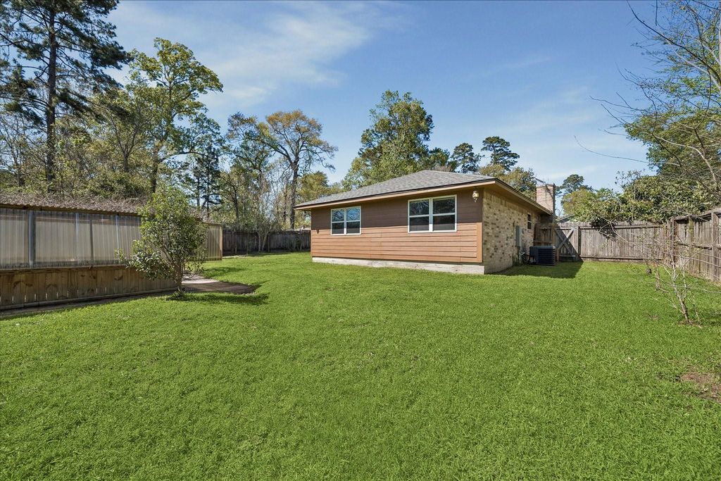 Welcome to 25732 Chestnut Ln in Splendora! This updated home features new flooring and fresh interior paint, plus a renovated kitchen and upgraded bathrooms (2025). The kitchen offers new cabinetry with added storage and granite countertops, along with stainless steel appliances. Bathrooms have been upgraded with new granite counters, cabinetry, and modern fixtures. Key updates include a new roof (2024) and a tankless water heater (2021). Additional features include LED lighting throughout, a Honeywell WiFi thermostat, and a WiFi-enabled garage door opener. All bedrooms feature ceiling fans and walk-in closets with double shelving for added storage. Enjoy a private outdoor oasis with mature fruit trees, a greenhouse, trellis with muscadine grapes, and a covered patio. The property offers added privacy with only one adjacent side neighbor. Conveniently located with easy access to US-59/I-69 for commuting.