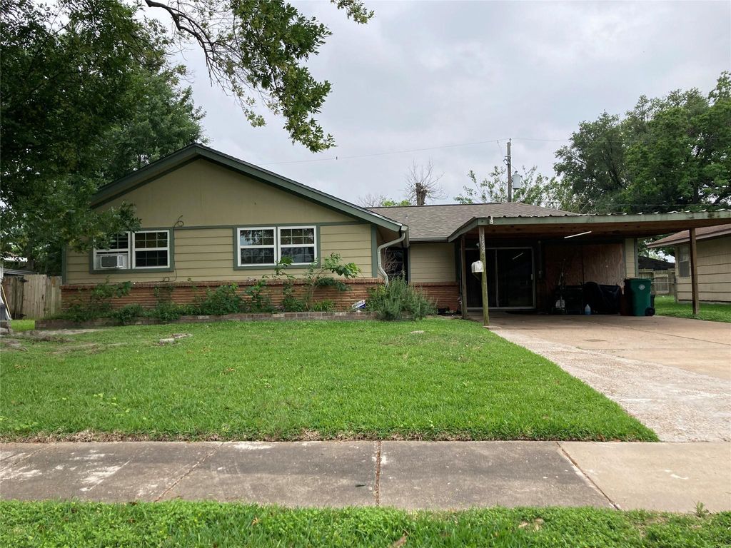 NICE 3 BEDROOM 2 FULL BATH. HOME HAS LIVING ROOM, DINING AREA AND HUGH DEN WITH ELECTRIC FIREPLACE. KITCHEN HAS QUARTZ COUNTERTOPS. REFRIGERATOR STAYS WITH HOME. ROOF IS APPROXIMATELY 3 YEARS OLD. REMODELED BATH WITH WATERFALL SHOWER. HOME HAS WATER SOFTNER. CUSTOM BUILT PATIO WITH OUTDOOR KITCHEN. LARGE FENCED IN BACK YARD. GARAGE BUILDING AND ADDITIONAL SHED IN BACK YARD. GREAT LOCATION, CLOSE TO BELTWAY, NEAR SHOPPING CENTERS AND DINING. MAKE YOUR APPOINTMENT TO TAKE A LOOK. NO HOA. HOME HAS NEVER FLOODED.
