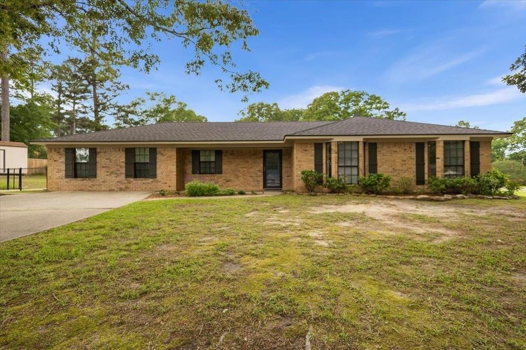 Are you needing a mother-in-law suite or a four bedroom with three full baths in a split bedroom floorplan? If so, here is your new home! This single story brick home is located at the end of a street with an easily managed landscaped corner lot. The exterior was freshly painted in 2026. The roof was replaced in 2022. A concrete sidewalk from the backyard to the driveway along with the chain link fencing were added in 2024. Inside this lovely home you will find faux wood laminate flooring almost throughout. The family room offers a vaulted ceiling and a wood burning fireplace for those chilly mornings or evenings. The kitchen features a row of cabinets with glass doors and solid surface counter tops. The laundry area is a room behind a door in the kitchen. The dining area is a cove between the family room and the kitchen. The primary bedroom is in a private wing of the home and features warm carpeting for your feet. The ensuite has tiled flooring, a deep garden tub perfect for unwinding with a relaxing bubble bath and a separate shower for rushed mornings. Two water heaters ensures plenty of hot water will be available for all. Both units were replaced in 2026. The three other bedrooms are located on the opposite side of the home. Two of the rooms feature a bay window for lots of natural light and a great spot for a bench or a dressing table. The third room is perfect for guests since it offers a private bathroom. Outside is a large covered patio area which is perfect for family bar-be-cues or just enjoying your morning coffee watching the birds. The storage building will definitely come in handy. The west side flower bed has planted flowers along with basil, rosemary and pomegranate bushes. This home is located in an award winning school district. Do not delay on seeing this home because this home is a must see. Call today!
