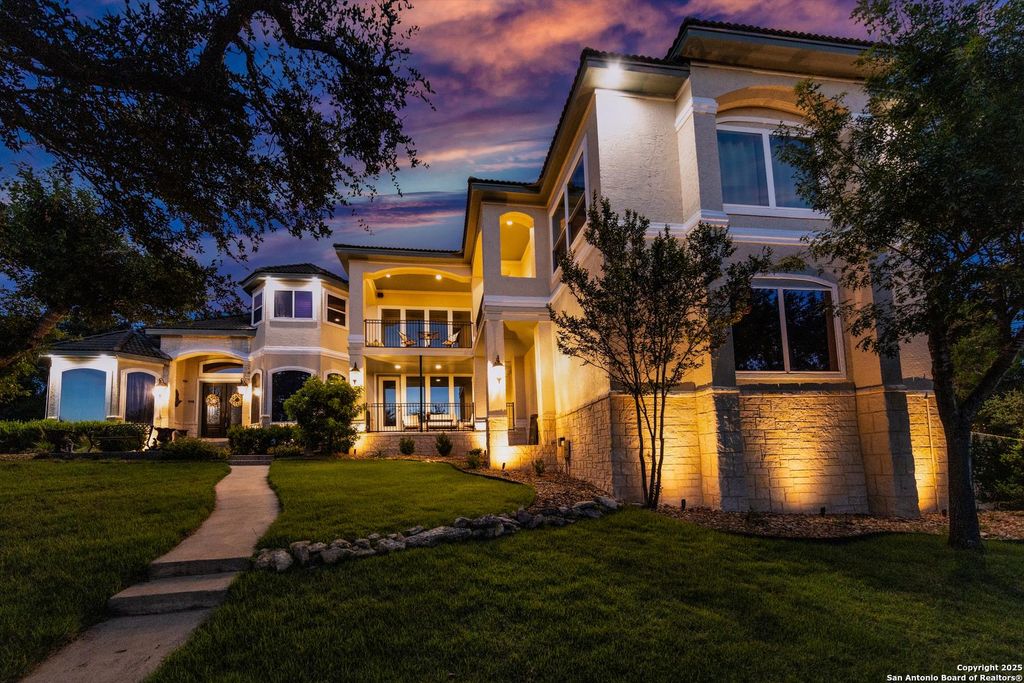 Located in the highly sought-after River Crossing community, this stunning two-story Mediterranean home sits on a 1.184-acre corner lot, surrounded by majestic live oaks, various other oak trees, native shrubbery, and breathtaking Hill Country views. This spacious home features 4-5 bedrooms, 4 baths, an office, a workout room, and a media room, providing ample space for both relaxation and productivity. The primary suite upstairs is a true retreat, boastin