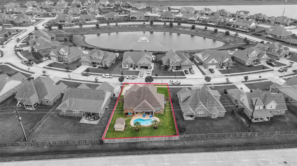 This charming 2-story home boasts 2 bedrooms with full baths on the 1st floor and 3 bedrooms, 2 baths upstairs. The front porch and backyard oasis offer the perfect setting for relaxation. With no back neighbors, enjoy added privacy. The spacious kitchen features mahogany cabinets and flows seamlessly into the family and dining rooms. Located in Mont Belvieu with top-rated Barbers Hill North schools, this property offers the ideal layout for comfortable living.