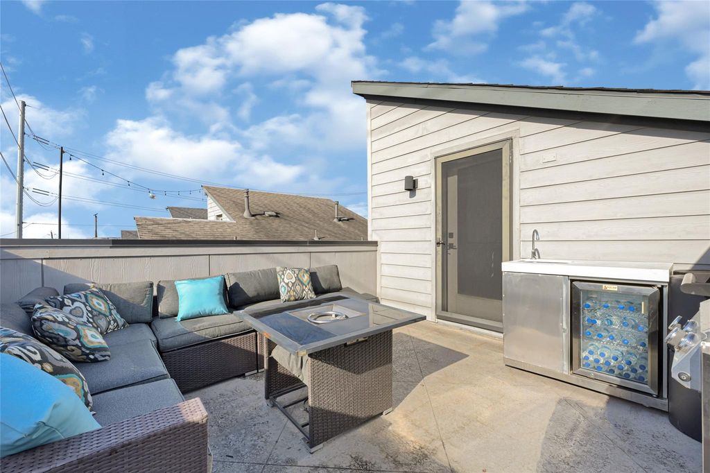 Sophisticated urban living at 618 York St in the heart of Houston’s vibrant EaDo district. This modern townhome blends industrial-inspired architecture with upscale finishes and exceptional outdoor living. The open-concept main level features engineered hardwood floors, quartz countertops, an oversized island, white shaker cabinetry, and stainless steel appliances—perfect for both everyday living and entertaining. The spacious primary suite offers a spa-like bath with a freestanding soaking tub and refined finishes rarely found at this price point. Multiple outdoor spaces elevate the lifestyle, including dual balconies, a private pet-friendly yard, and a rooftop terrace ideal for entertaining or relaxing with skyline views. Located just two blocks from METRORail and minutes from Downtown, major sporting venues, dining, and entertainment, this home delivers the best of Houston city living in one of its most dynamic neighborhoods. Washer/ Dryer &Patio furniture on rooftop included