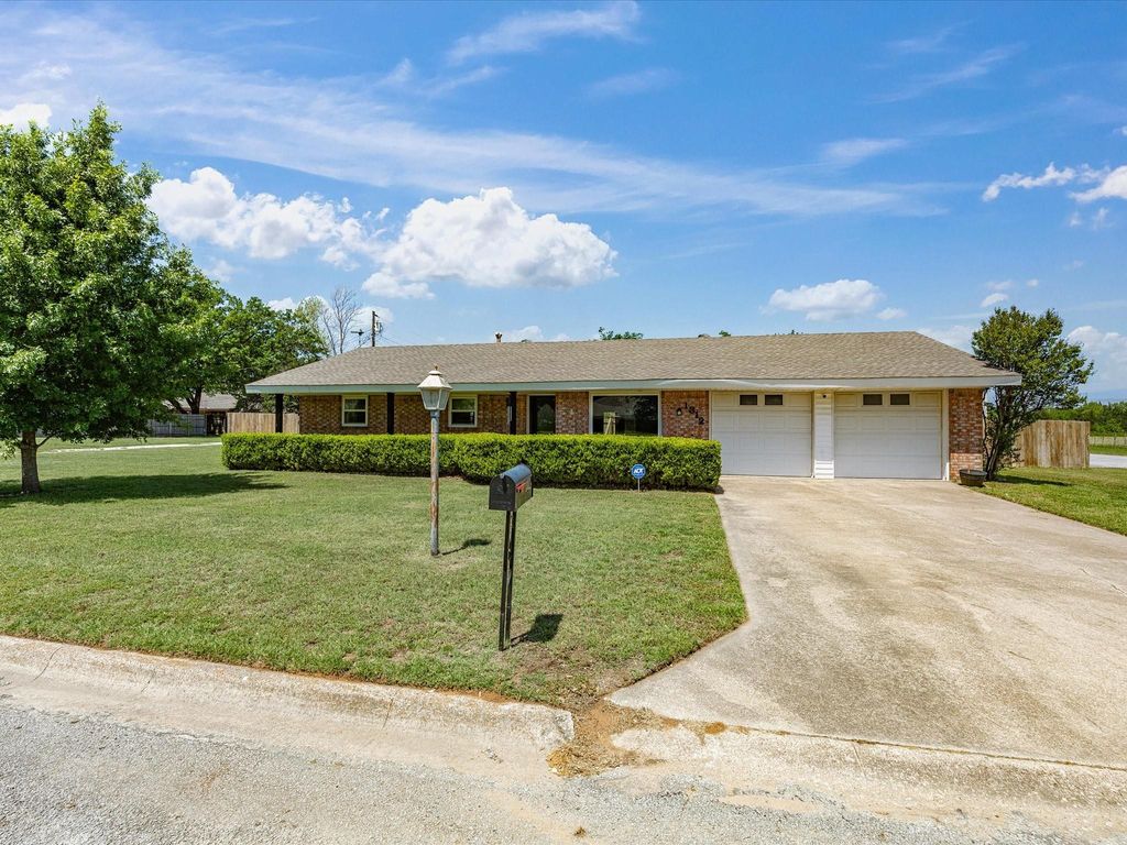 Inviting 3 bed, 2 bath home on a spacious .30 acre corner lot with peaceful pasture views and a true country feel right in town. This 1,386 sq ft home offers a bright, open living area with a cozy electric fireplace and mantle, plus an updated kitchen perfect for everyday living. Enjoy relaxing on the covered front porch or entertaining on the covered back patio. The property features a 2-car garage and a raised covered carport with RV clearance for added versatility. Fully fenced backyard includes a separate dog run, storage building, and storm cellar. Unique safe room tucked inside a closet adds an extra layer of security. A must-see with charm, space, and functionality!