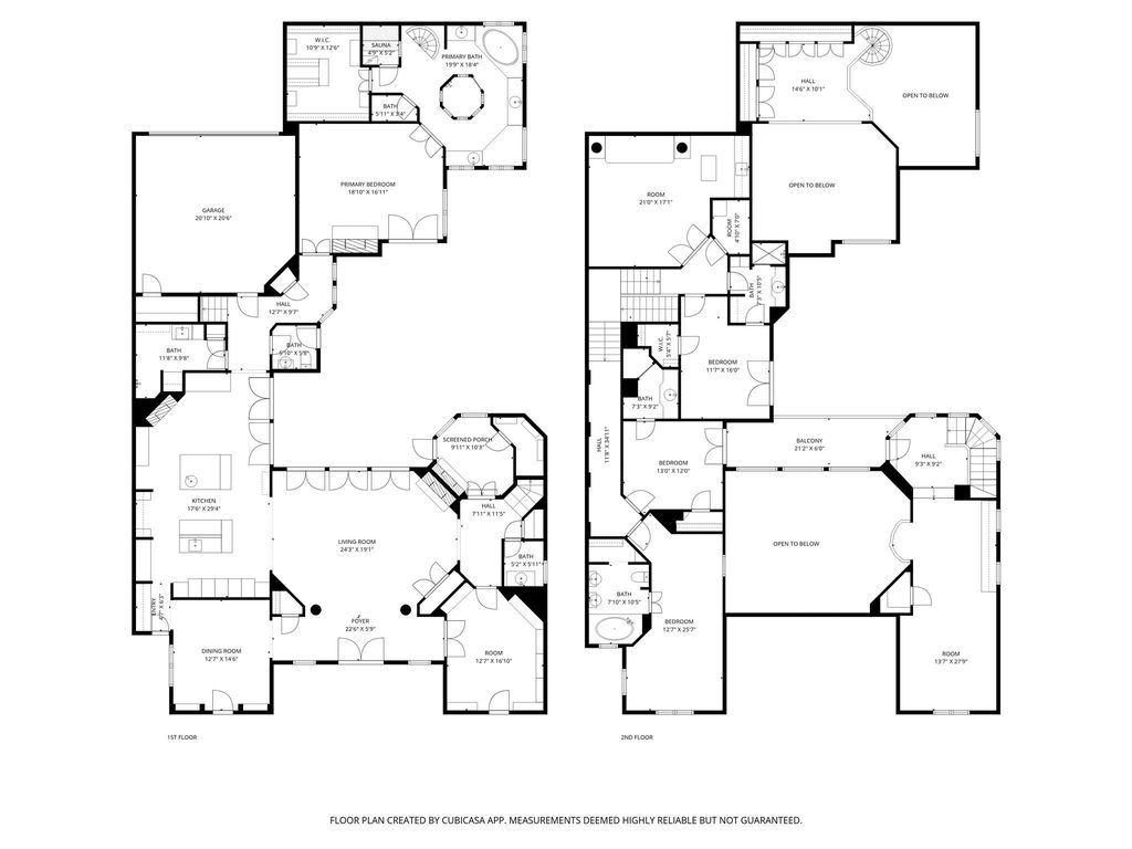 The spacious kitchen includes extensive cabinetry, a butler’s pantry, prep sink, dish sink, and abundant counter space providing a fantastic opportunity to design and install appliances of your choice to truly make the space your own. A breakfast area with a fireplace provides that cozy feeling. The first-floor primary suite provides privacy and features a spacious bath with separate vanities, a third sink, jetted tub, sauna, separate shower, and an oversized walk-in closet. and as you walk up the spiral staircase, you find a very unique closet room, with room to add a vanity or sitting area.