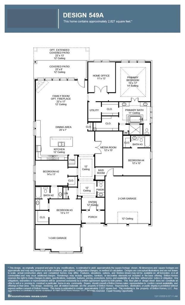 Home office with French doors set at entry. Media room with French doors off extended entry. Formal dining room opens to family room with sliding glass doors and corner fireplace. Kitchen hosts generous island with built-in seating space. Adjoining morning area features wall of windows. Primary bedroom features wall of windows. Dual vanities, freestanding tub, separate glass-enclosed shower and two walk-in closets in primary bath. Guest suite. High ceilings and abundant closet space add to this four-bedroom home. Covered backyard patio. Mud room off three-car garage.