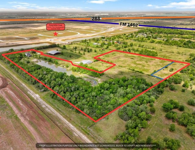 | LOCATION LOCATION LOCATION! Discover this rare 19 acre property on Norris Road located in the Alvin ETJ. Conveniently situated minutes from SH 288, FM 1462, & the future SH 99/Grand Parkway- offering accessibility, visibility, & long-term value. This property is located in one of Brazoria County’s fastest-growing regions, easy access to Houston, Pearland, & Manvel. This tract is situated at the end of Norris Rd & directly adjoining to Rosharon's newest 2,900 acre master-planned community- Preservation Creek. Featuring 310+ feet of Norris Rd. frontage allowing for direct connection to the 5,500 residential home community. A 1,740 sq.ft. home is located on the property & provides a 2 acre lake-view w/ unbelievable sunsets! The home is as-is & ready for some TLC! Whether you're looking to build your private ranch close to the city, establish an equestrian business, or take advantage of future development opportunities, this versatile property offers endless possibilities! |
