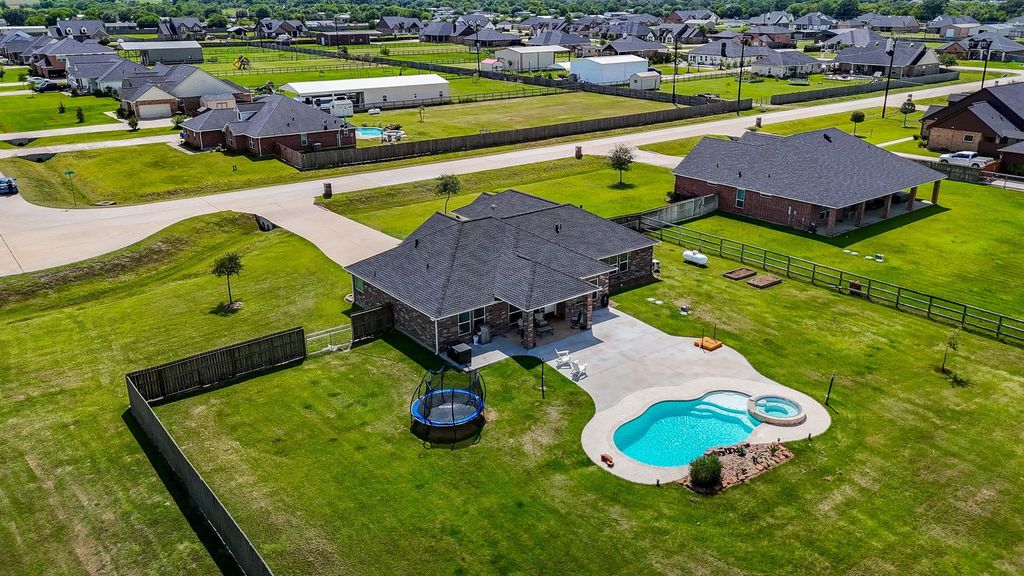 Beautiful 4-Bedroom, 2-Bath Home on 1± Acre in Needville ISD. This elegant home offers the perfect blend of comfort and style in the highly sought-after Needville ISD. The kitchen is a chef’s dream, featuring abundant storage, gleaming granite countertops, rich cherry-stained cabinetry, and a classic travertine backsplash. Retreat to the luxurious primary suite, complete with a spa-like bathroom boasting a jetted soaking tub, separate walk-in shower, and a generous walk-in closet. Each of the four bedrooms provides ample space and oversized closets for all your storage needs. Step outside to your private backyard oasis—fully fenced with a covered patio ideal for entertaining, plus a sparkling heated pool and spa to enjoy year-round. Conveniently located just minutes from dining, shopping, and everyday essentials. New roof in 2024. Owner is a licensed agent.