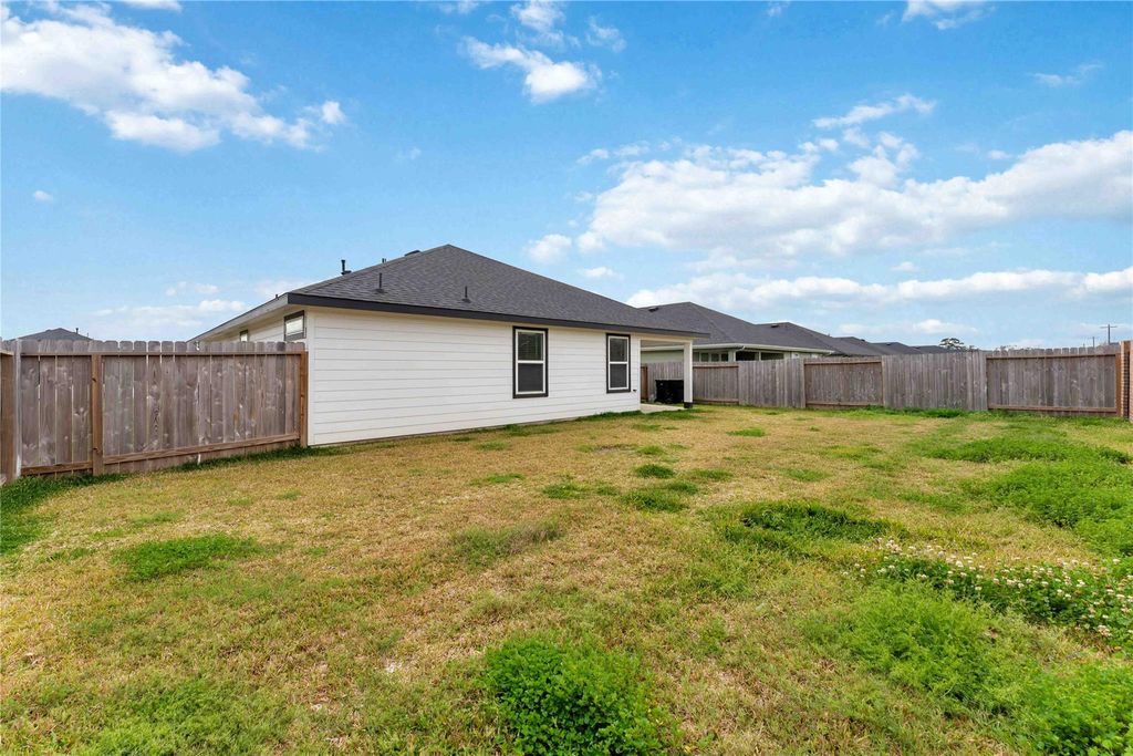 Welcome to 1026 Great Barracuda Ln in the Watermark community of Alvin. Built in 2023, this beautifully maintained one-story offers 4 bedrooms, 3 full baths, and a flexible home office. The open-concept layout connects the spacious living room, dining area, and kitchen, creating an ideal space for everyday living and entertaining. The kitchen features granite countertops, gas cooking, a pantry, and breakfast bar seating overlooking the family room. The private primary suite includes dual sinks, a walk-in closet, and a spacious shower. Energy-efficient features include a tankless water heater, high-efficiency HVAC, and programmable thermostat. Enjoy a covered patio and fenced backyard, plus neighborhood amenities including walking paths, parks, playground, and a community pond. Conveniently located with easy access to Hwy 35 and local shopping and dining.