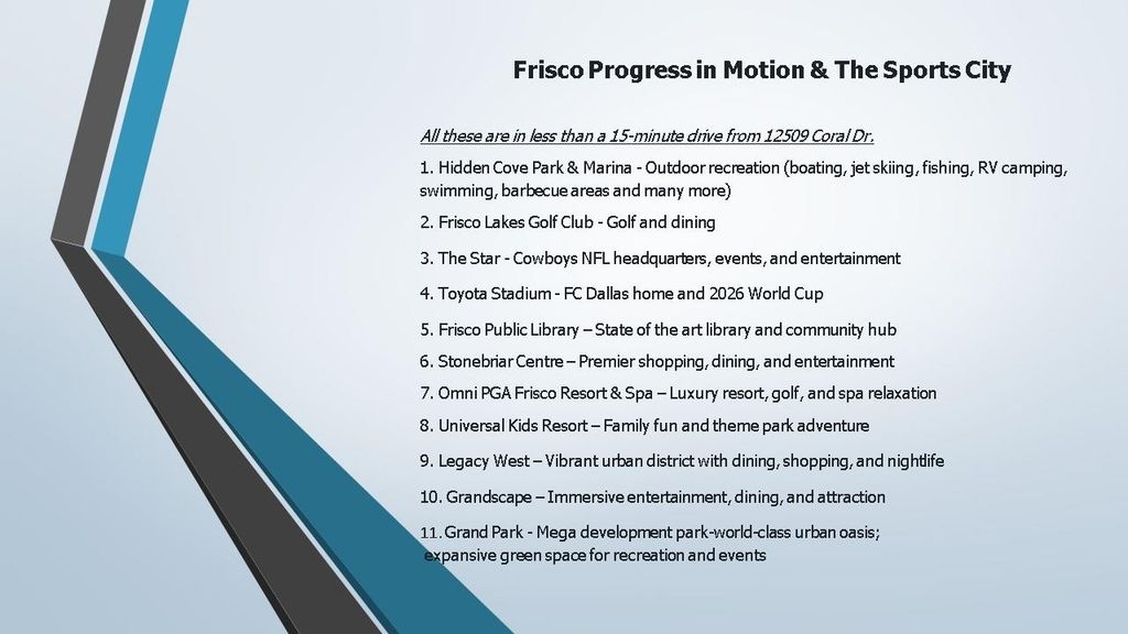 Nestled in a tranquil, prime location in West Frisco-surrounded by several renowned golf courses, including Frisco Lakes Golf Club-this beautifully maintained one-story home offers the perfect blend of comfort, style, and convenience. Ideally situated just minutes from Hidden Cove Park and Marina, Frisco Lakes Golf Club, The Star, and Stonebriar Centre, you’ll enjoy easy access to premier dining, shopping, sports, and outdoor recreation. This immaculate 4-bedroom, 2-bath home with a dedicated study spans 2,093 square feet and is in pristine, move-in-ready condition. Located just steps from the Hidden Cove community clubhouse, pool, and playground, it’s perfectly positioned for summer enjoyment and everyday living. Step inside to an inviting open-concept floor plan featuring soaring cathedral-style ceilings, luxury wood flooring, and abundant natural light throughout. A desirable private study greets you upon entry—ideal for a home office or flex space. The spacious kitchen is designed for both functionality and style, offering stainless steel appliances, 42-inch cabinetry, a large breakfast bar, and a generous pantry for ample storage. The living area is bright and comfortable, highlighted by high ceilings and serene views of the backyard—creating the perfect space to relax or entertain. The primary suite is generously sized and features also high ceiling, along with an ensuite bath complete with double vanities, a soaking tub, a separate shower, and a custom walk-in closet. Step outside to a large backyard with a patio, providing plenty of space for outdoor entertaining, play, or pets—your own private retreat. Don’t miss this exceptional opportunity to own a stunning home in one of Frisco’s most desirable locations.