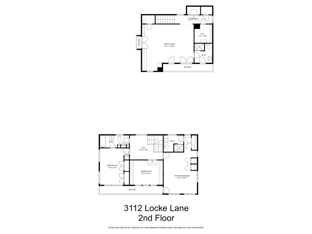 Classic red brick River Oaks home with a recently built guest house over the two-car garage. Formal entry to main house with plaster walls with cased opening to living room with hardwood floors and a fireplace and the formal dining room. Island kitchen with stainless appliances and great storage, opens to family room with Saltillo tile and views. Upstairs to three bedrooms and two updated baths. Access to balcony facing Locke Lane from primary bedroom. Middle bedroom has been converted to study with built-ins. Covered back porch off family room overlooks a beautiful, landscaped patio and yard by McDugald Steele Landscape Architects. Entry to guest house (approximately 808 sq. ft.) with stairs to second level. Great space upstairs and down. Home office and half bath down. Great room upstairs with hardwoods, high ceilings, full bath and large closets. Elevator capable. Potting area behind garage. A fine home and guest house.