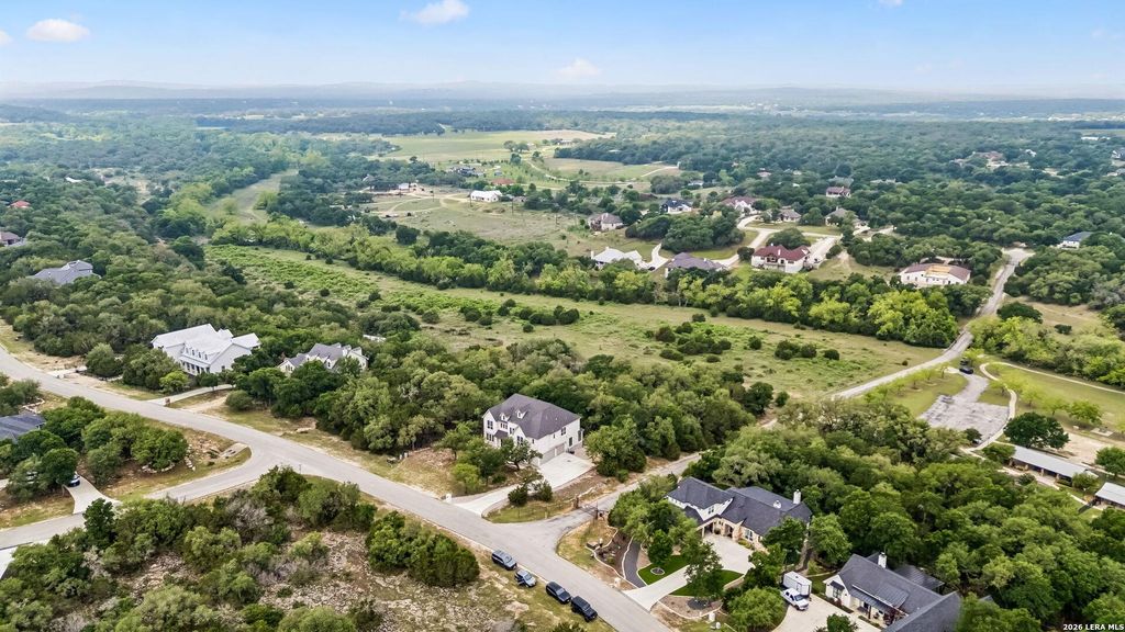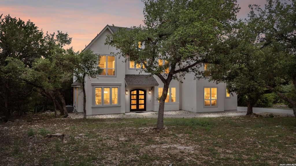 Set on just over 2 acres in The Crossing at Spring Creek, this Hill Country home offers the space, privacy, and comfort today's buyers are looking for, paired with a thoughtful design that supports everyday family living. Inside, the open layout is filled with natural light, highlighted by soaring ceilings, wood beam accents, and a welcoming living area anchored by a brick fireplace. The kitchen is designed to gather, featuring granite countertops, stainless steel appliances, a pot filler, and an oversized island that flows seamlessly into both dining and living spaces. With six bedrooms, a full bath and bedroom on the main level, five total full bathrooms, and a convenient half bath with outdoor access, plus a dedicated media room and flexible living spaces, the home provides room to grow, host, and adapt to changing needs. The primary suite offers a quiet retreat with a spa-like bath, dual vanities, soaking tub, walk-in shower, and generous closet space. Step outside to a co