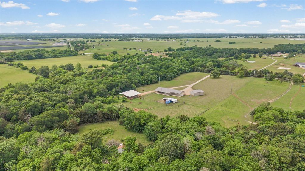 Experience the best of East Texas Living with this stunning barndominium nestled on 10 picturesque acres, offering the perfect blend of open pasture and mature trees ideal for recreation, livestock, and hunting! Tucked back from the road, this property delivers a peaceful setting with space to truly spread out .... room to live, work, and play! Inside, you’ll find a spacious, open-concept floorplan highlighted by vaulted ceilings and a striking stone fireplace that anchors the living room. The kitchen is designed to impress, featuring custom cabinetry, double oven range, a large center island with breakfast bar, granite countertops, a deep farmhouse sink, and an oversized walk-in pantry! The primary suite provides a comfortable retreat with a double-sink vanity, linen storage, garden tub, separate shower, and a generous walk-in closet. Two secondary bedrooms are thoughtfully positioned in a split-bedroom layout for added privacy. The oversized laundry room is both functional and versatile, complete with space for a freezer, extended folding area, built-in cabinetry, a sink, and additional storage. Step outside and experience everything you need for country living! The property includes a 30x40 workshop with electricity and spray foam insulation, a 4-car carport, and covered front and back porches perfect for enjoying sunrise and sunset views. Additional features include a fenced yard, chicken coop, loafing shed, storage container, and a large pole barn ideal for equipment, hay storage, RV or boat parking, animal stalls, and more! This property was built for versatility! The entire acreage is fenced and cross-fenced, making it ready for livestock or agricultural use. The mix of open land and wooded cover also makes this property well-suited for hunting and outdoor recreation right in your own backyard. This East Texas retreat offers space, functionality, and endless possibilities—don’t miss your chance to make it yours!