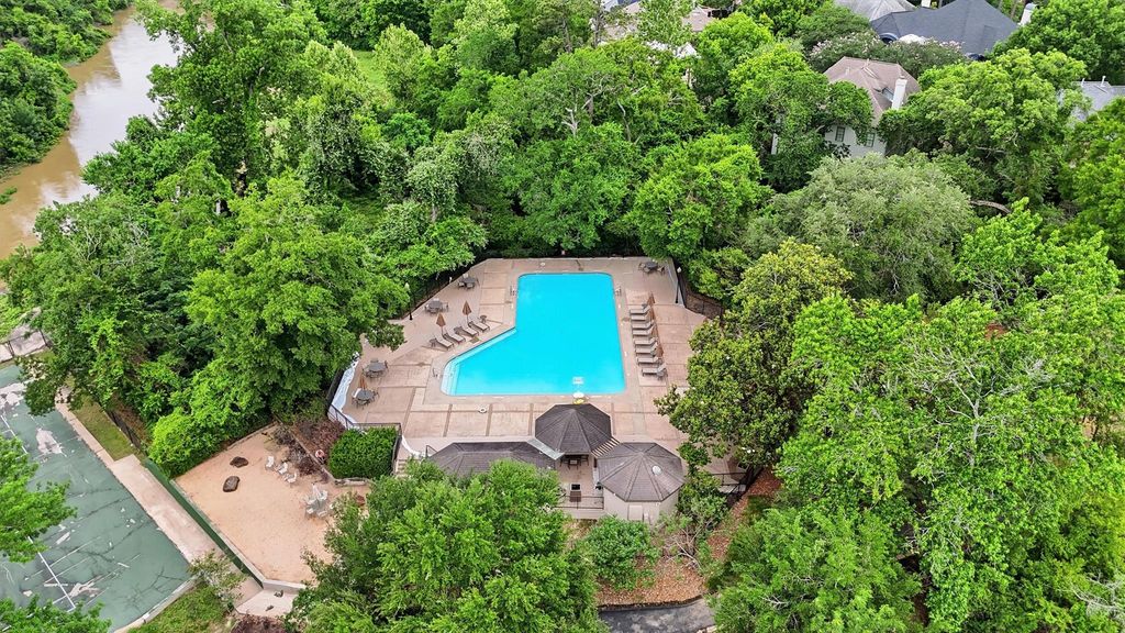 Incredible Location! Modern 4 bedroom home in the prestigious guard gated community of Hudson Bayou/Hudson Forest in the heart of Memorial. Perfectly nestled in a serene, treehouse-like environment you'll find this Single Family detached home with a great open layout featuring floor to ceiling windows and beautiful engineered hardwood floors, 2 cozy fireplaces - large living room with stacked stone fireplace and one bedroom with private bath on the main level. you also have 3 additional bedrooms upstairs including a massive primary with a spa like ensuite bath, custom closet, vaulted ceiling and cozy fireplace. You have a bright and open kitchen with stainless appliances, built in oven and microwave, a gas cook top, large island overlooking the breakfast area with a pantry and mudroom just off the kitchen. Plenty of storage throughout.