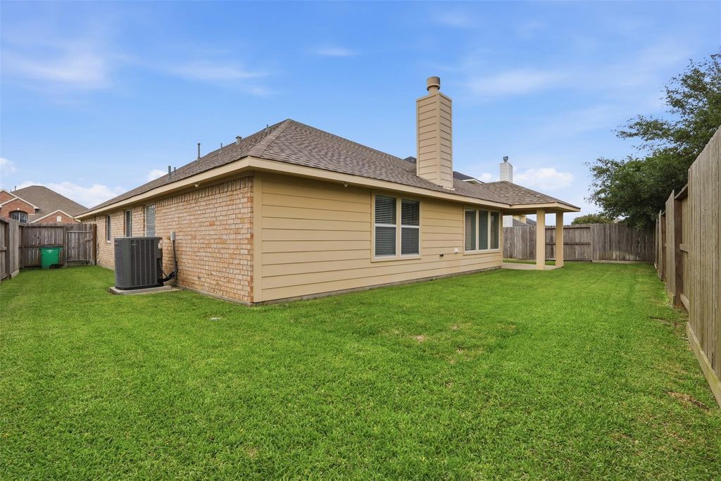 Welcome to this stunning 4-bedroom, 2-bath home offering comfort, style, and functionality throughout. High ceilings and abundant natural light fill the spacious living areas, including a formal living room with a cozy fireplace and a formal dining. The gourmet kitchen features stainless steel appliances, a large island with a breakfast bar, a skylight, and a walk-in pantry. Enjoy movie nights in the media room with built-in speakers or work from the dedicated office/study area. The primary suite boasts a luxurious en suite bath with a soaking garden tub, separate shower, dual vanity, and a generous walk-in closet. Secondary bedrooms are roomy and include 1 walk-in closet for added convenience. Step outside to the covered patio and relax in your private backyard oasis. Conveniently located near major highways, shopping, dining, and just minutes from Bush Intercontinental Airport, this home truly has it all! Home has never flooded. Contact agent for a private tour today.