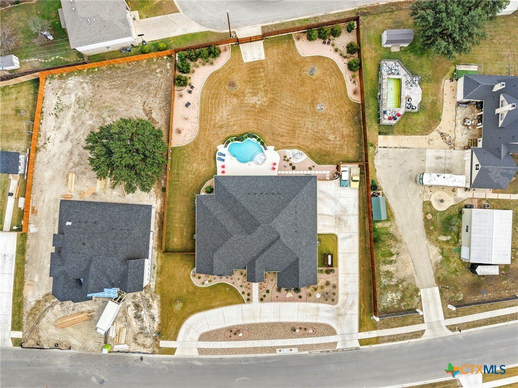 Welcome to this award-winning luxury residence located in The Settlement on Stagecoach. Situated on a spacious .85-acre lot, this exceptional 4-bedroom, 4.5-bathroom home offers 3,803 square feet of thoughtfully designed living space and has been recognized with top honors including Best Craftsmanship, Best Kitchen, Best Bath, Best Technology, Best Interior Design, and Best in Show. Built in 2023, this one-story home showcases elevated finishes throughout, including marble and wood flooring, custom cabinetry, crown molding, and designer details at every turn. The open-concept floor plan seamlessly connects the living, dining, and scullery kitchen, featuring a large island, gas stove and pot filler-perfect for both everyday living and entertaining. The luxurious primary suite provides a private retreat with a spa-inspired bathroom offering an oversized tub, separate shower, dual vanities, in-home sauna and custom designed closet. Additional spaces include a dedicated office and media room. Step outside to your private backyard oasis complete with a covered patio with over 1200 sqft, outdoor kitchen, fireplace, and a resort-style in-ground pool. Additional features include a 4-car garage with lift, automatic sprinkler system, and beautifully maintained grounds. This home is the perfect blend of luxury, comfort, and award-winning design.