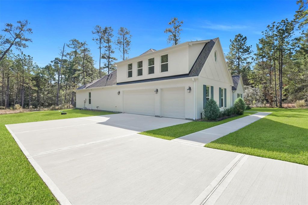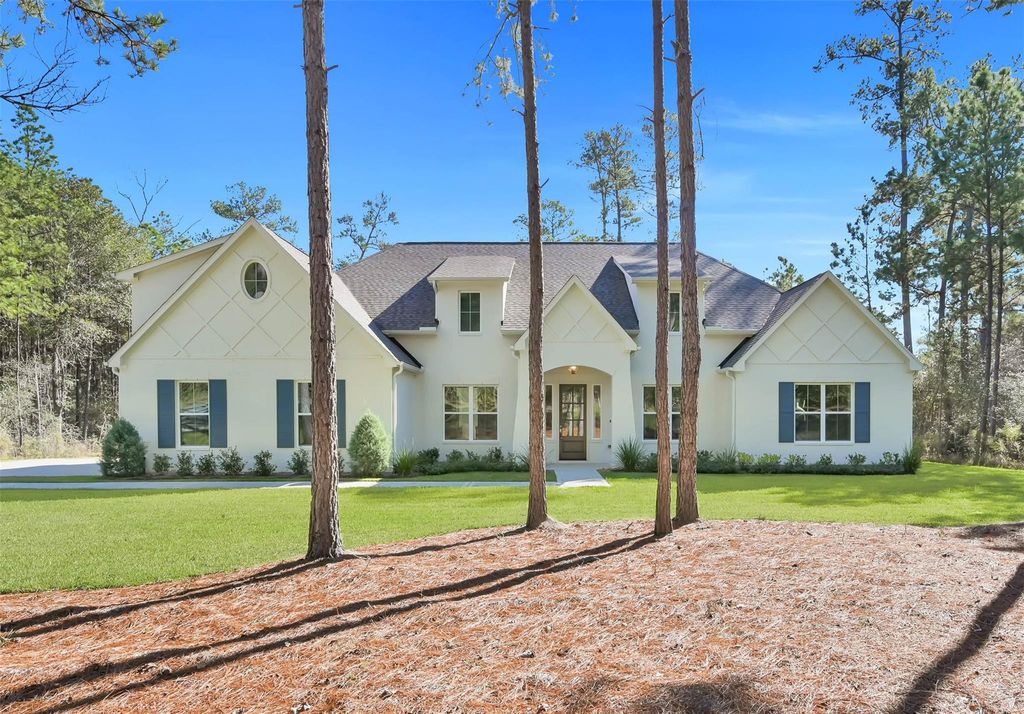 Welcome to 136 Grand View, where quality and luxury unite in this fabulous custom home on 2 beautiful wooded acres in Texas Grand Ranch. This 3 bedroom, 4.5 bath home with 3-car garage has been meticulously built by award winning Royal Texan Homes & features an open concept layout with a large second floor game room/flex space. From the moment you enter, prepare to be wowed by the gorgeous herringbone wood floors in the entry. The central great room features cathedral ceilings, a cast stone fireplace and a wall of windows with views of the outdoors. High-end custom cabinetry, quartz counters, a large chef's pantry with shelves & outlets, professional appliances, 8" crown molding and 8 ft doors, are just a few standard yet upscale features. Private primary suite with spa-like ensuite bath & amazing closet. Impeccable craftsmanship is obvious throughout this luxury custom home in Texas Grand Ranch adjacent to the Sam Houston Nat'l. Forest with numerous hiking trails & outdoor activities.
