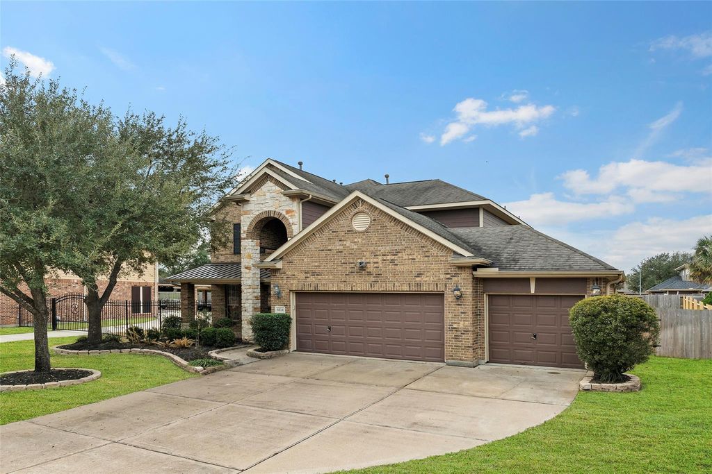 Welcome to this desirable Cinco Ranch home, featuring a charming oversized front porch that invites you inside. This spacious home offers 5 bedrooms, a game room, and a media room that is fully wired and ready for entertaining. The open entry hallway leads to a private study and formal dining room, the living room impresses with soaring ceilings and a ceiling fan for added comfort. The heart of the home is the large island kitchen, perfect for preparing meals, complete with stainless steel appliances, a convenient built-in computer desk, and a large pantry with ample storage. The primary suite offers a relaxing retreat with a spa-like bathroom featuring double sinks, a vanity, whirlpool tub, and a new walk-in shower with seating. Step outside to the covered back porch overlooking a large backyard. Additional highlights include a 3-car garage with epoxy flooring, sprinkler system, French drains, two water heaters, and a water softener. Call us today to schedule your showing!