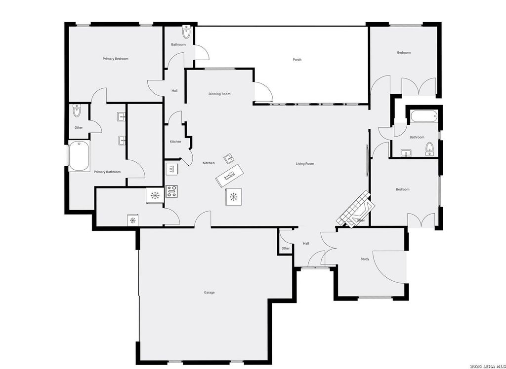 Discover this Lightly-Lived-In, 2021-built Stone & Stucco Home on 1.44 Acres of Texas Countryside in The Settlement neighborhood of La Vernia! The Generous concrete Driveway & Sidewalk allow for Ample Parking and welcome you to the Fashionable Residence. With 4 Bedrooms (one of which is an ideal study/office), 2.5 Baths, and an Open Layout with Beautiful Wood-Tile Floors throughout (easy care, no carpet!) ... this home offers flexibility & ease for your lifestyle. Double French Doors off the entry open to the Study/4th bedroom, with grand windows graced by plantation shutters - and Fiber Internet makes remote work a breeze! In the Living Room, the stone fireplace creates a focal point for gatherings, and abundant windows showcase country views. The Island Kitchen features chic dual-finish cabinetry topped by Gorgeous Granite Counters, with stainless steel GE appliances including a separate cooktop + built-in oven. Journey into the Spacious Master Retreat with Lavish Bath: Double Vanity