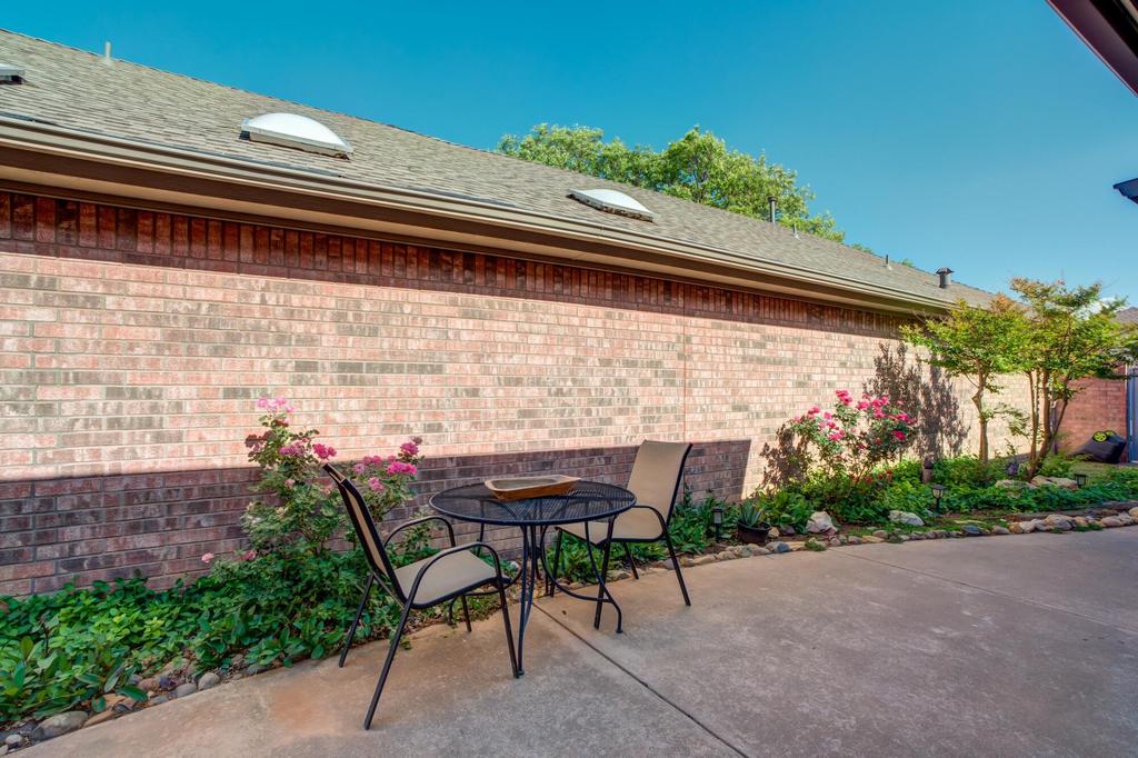 Well-designed garden home with a stunning view of the lake park from the updated kitchen, a safe room, an office in addition to two bedrooms, high ceilings, plantation shutters, crown molding, and quality finishes throughout. A striking fireplace wall with built-ins anchors the main living space that is open to the formal dining area. The isolated primary suite includes a large walk-in shower and generous closet. The bonus room has direct access to the hall bathroom to utilize the flex space as an office, media room, guest room, or second living area. Standout features include a laundry room that doubles as a storm shelter/safe room, a side courtyard, and a rear-entry 2-car garage off a paved alley - low maintenance inside and out. A solid option for anyone looking to downsize without sacrificing space or quality.