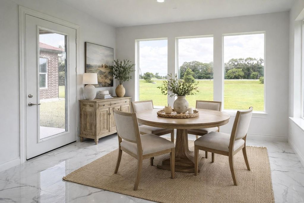 Welcome to this exquisite 4-bed, 3.5-bath custom-built home nestled on a spacious 1-acre lot in the serene community of The Oaks at Suncreek Estates. This luxurious estate offers the perfect blend of country living with city convenience. Bright, open-concept layout with beautiful tile flooring flowing seamlessly through the common areas. Gourmet kitchen featuring a large breakfast bar island with navy blue accent cabinetry, quartz countertops, and premier stainless-steel appliances. Spacious family room with towering ceilings, a linear fireplace, and a stylish accent wall. Luxurious primary suite with a private bedroom, freestanding tub, walk-in shower, and an expansive walk-in closet. Upstairs, versatile space ideal for a game room, home office, or additional living area. Generous backyard space ready for your personal touch—perfect for a pool, garden, or outdoor entertaining area. Entire property situated within Zone X (non-flood zone), ensuring peace of mind.