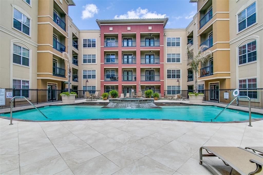 Mid Rise Mediterranean style 1 bedroom 1 bath condo with wood laminate floors, granite counters, stainless steel appliances & washer/dryer. High Speed Internet & Water Included! Amazing pool and picnic area-perfect for entertaining. Right on the rail at Smith Lands rail stop, great Medical Center location. Condo perfectly located on property for parking, trash chute and all other amenities. Room sizes approximate per appraisal district if critical please measure. Hurry won't last!
