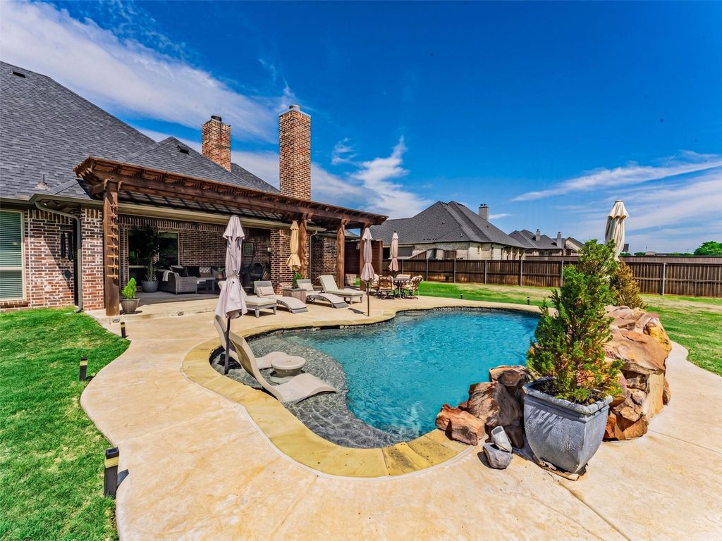 Beautifully appointed former model home by AGC Custom Homes, ideally situated in a sought-after Midlothian community and zoned to top-rated Midlothian ISD schools. This 4-bedroom, 3-bath home offers 2,763 sq ft of thoughtfully designed living space on a spacious 1-acre lot. Step inside to an open-concept floor plan featuring over sized rooms, a functional layout, and upscale finishes throughout. The heart of the home showcases a stunning double island kitchen—perfect for entertaining—alongside generous living and dining spaces. A versatile flex room provides endless possibilities as a media room, game room, additional living area, or even a 5th bedroom. Outdoors, enjoy your private backyard retreat complete with a beautiful pool (just 3 years old) featuring umbrella inserts and a volleyball setup—ideal for both relaxing and entertaining. The cozy outdoor living area with fireplace creates the perfect setting year-round. Additional highlights include a 3-car garage, recently updated landscaping, and convenient access to dining, shopping, and entertainment in downtown Midlothian. This one checks all the boxes—space, style, and location. Come take a look at this beauty.