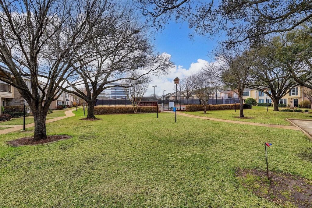 Set within a beautifully maintained, park-like community in the sought-after Briargrove Park area, this updated 3-bedroom/2.5-bath townhome delivers both comfort and convenience. The first level features luxury vinyl plank floors and fresh paint (2022), along with stylish updated lighting fixtures and double-pane windows. The spacious formal living room overlooks a greenbelt with a small playground, while a separate den at the rear of the home features a wood-burning fireplace with brick surround. A designated dining area opens to the updated kitchen with 2023 GE stainless steel appliances including dishwasher, range and microwave. Newly turfed patio (2025) is located off the den and connects to a covered 2-car carport with attached storage. Community amenities include a pool, tennis courts, and secured access to neighboring Mary Ann Francklow Park. Ideally located just minutes from CityCentre, Memorial City, Town & Country, major freeways including Beltway 8, and the Energy Corridor.