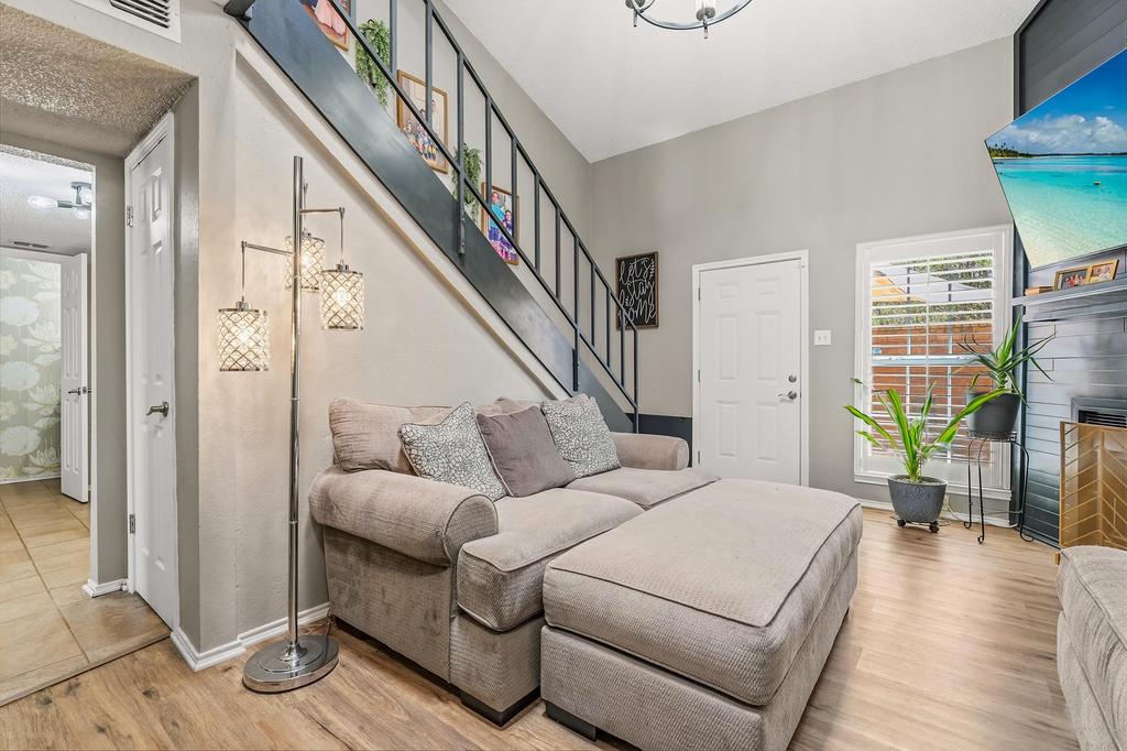 Adorable townhouse in a prime location near West End and within the highly sought-after Frenship School District. Soaring ceilings and abundant natural light highlight the stunning fireplace, creating an open and inviting living space. The spacious dining area offers flexibility and could easily serve as a home office or cozy den. Upstairs features a charming landing perfect for a reading nook, along with two bedrooms connected by a Jack-and-Jill bathroom. This home has been thoughtfully updated with new windows, vinyl siding, flooring, doors, plantation shutters, and fresh paint throughout. Enjoy both front and back patio areas designed for low maintenance while still offering space to relax or entertain. Move-in ready and waiting for its new owners-don''t miss this one!
