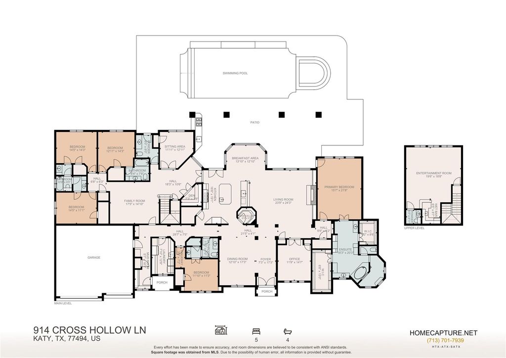 Welcome to 914 Cross Hollow Lane in the exclusive master-planned community of WoodCreek Reserve, zoned to Katy ISD. This exceptional 5 bedroom, 4 full and 2 half-bath home with a 3-car garage showcases timeless elegance and refined design. A grand entry and formal dining room lead into an open-concept layout ideal for entertaining. The chef’s kitchen features two-tone cabinetry, built-in state of the art appliances, weathered granite countertops, beamed ceilings, and an oversized island. The family room offers a stunning fireplace, elegant tile flooring, and walls of windows filled with natural light. The primary suite is a private retreat with vaulted beamed ceilings, and an en-suite with oversized walk in shower, dual rainheads, garden tub, double vanities, and dual walk-in closets. Additional highlights include a home office, sitting area, 4 secondary bedrooms and an upstairs gameroom. Enjoy a backyard oasis with covered patio, outdoor kitchen, pool, spa, and no back neighbors.
