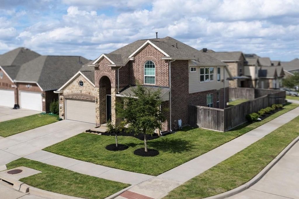 Location, location, location—priced to sell fast! Stunning corner-lot home with 4 beds & 3.5 baths in the highly sought-after master-planned Willow Creek Farms with resort-style amenities including an Olympic pool, splash pad, trails, and parks. Grand foyer with soaring ceilings opens to a bright open-concept layout and private study. Gourmet kitchen features granite countertops, large island, breakfast bar, custom cabinetry, and under-cabinet lighting. Spacious living room with upgraded tile flooring and crown molding. Primary suite offers a wall of windows and a spa-like bath with dual sinks, garden tub, and glass-enclosed shower. Generous secondary bedrooms plus a large game room. Enjoy the oversized covered patio and enhanced backyard—perfect for entertaining. Zoned to LCISD and conveniently located near I-10 & Grand Parkway (99) with easy access to shopping and dining. Multiple upgrades throughout!