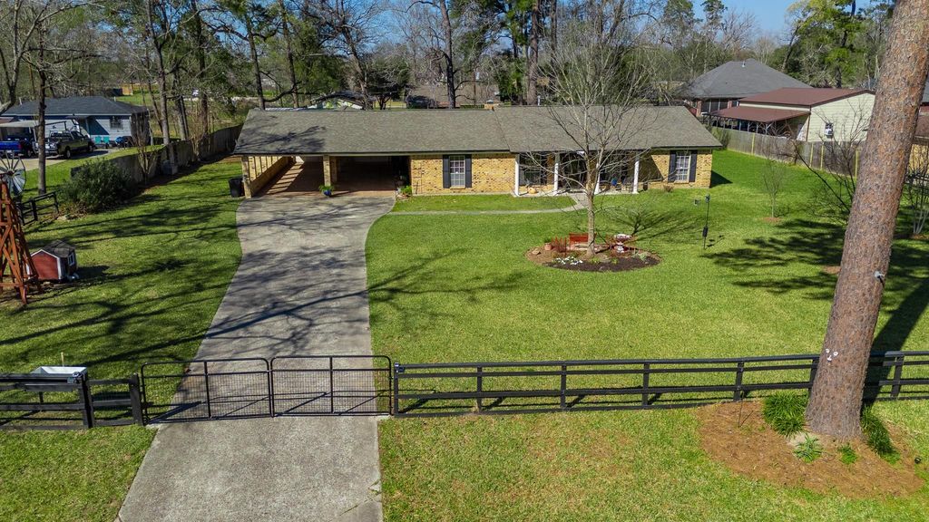 Looking for the perfect place to set up your home based business? This is it! With 3/4 acres of fenced, unrestricted property, this 1-story ranch home offers you a world of opportunity and flexibility. 6-car covered parking plus oversized attached garage! One side of garage is converted to finished/cooled space with a 1/2 bath - making the perfect spot for your office or a place of guests. Main house offers classic style with many updates, to include a bright, cheerful and spacious kitchen that will bring a smile! Custom cabinets w/soft-close drawers, convection oven w/gas cooktop, granite counters and a 100% moveable island! SO much storage space, it is simply amazing. HUGE gas fireplace in the family room. Formal study or living room, plus formal dining - these rooms offer great flexibility as well. Don't miss the HUGE storage building with built-in shelves behind the garage. Pex plumbing; updated well/septic; A/C (2019); Roof less than 10 years old. NO CARPET!