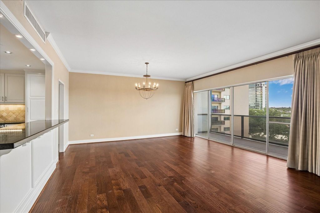 One of the best locations in the building! From the northeast corner on the 5th floor, enjoy the views of the treetops of River Oaks as well as the sun rising over downtown Houston! This updated 3 bedroom, 2 bath condo is ready for immediate move in. Gleaming hardwood floors in living/dining area, kitchen with stainless appliances, granite countertops and open breakfast bar area to living/dining. Beautiful baths, both with walk-in showers! Washer/dryer in the condo. Fantastic vistas from the spacious balcony. The Lamar Tower has unparalleled amenities, including free valet parking, exercise room with 24 hr access, two party rooms, and a gorgeous pool. On top of its amenities, its location is superb: just a few blocks to the West Ave shops and restaurants, and easy access to freeways and downtown. Take the plunge and move to a high-rise:you have been contemplating this for too long! All info per seller