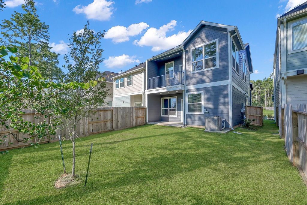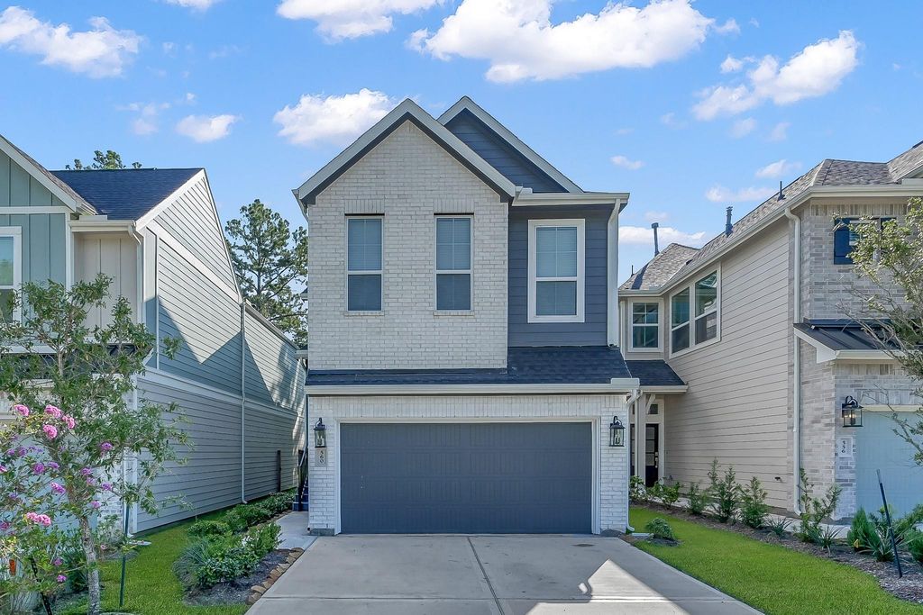 Highly sought after floor plan, offering 3 spacious bedrooms, 2.5 bathrooms, a generous game room, and a full 2-car garage. This home offers an open floor plan, lots of natural light, no backneighbors, nice size backyard, covered patio and balcony! Loaded with upgrades, including wood-look ceramic tile throughout the main living areas, an elegant horizontal fireplace, 42” kitchen white cabinets with under-cabinet lighting, designer pendant lights, and premium quartz countertops. The kitchen also features a complete stainless steel appliance package—refrigerator included. Utility room w washer and dryer included. Gameroom/Flex room downstairs! The Woodlands Hills offers a variety of amenities including resort style pool, playground, splash pad, walking trails, parks, fitness area and so much more!