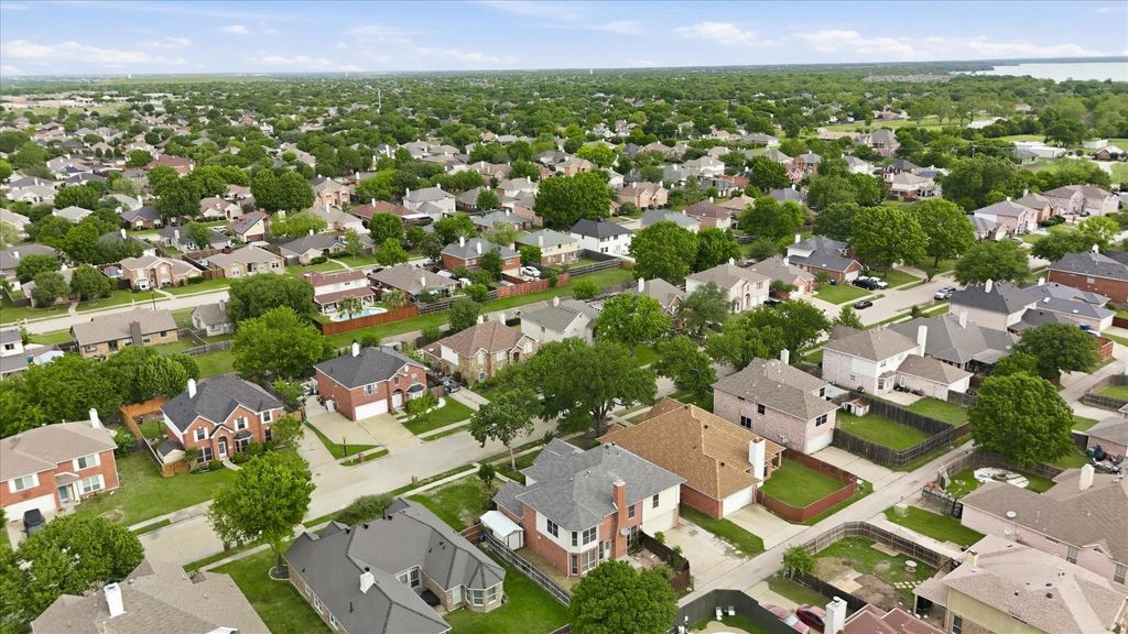 Discover the perfect blend of traditional charm and modern convenience in this beautifully landscaped 5-bedroom, 3-bathroom home in Rowlett's coveted Princeton Park. As you enter, you're greeted by a grand, light-filled space with soaring ceilings that lead to a versatile sitting room or formal living area, perfect for welcoming guests. The adjacent formal dining room sets the stage for memorable dinner parties. The heart of the home is the bright and inviting kitchen, which offers a large center island, elegant granite countertops, high-end stainless steel appliances, and abundant cabinetry with a spacious pantry. A quaint breakfast nook offers a lovely spot to enjoy your morning coffee while overlooking the backyard. The kitchen flows seamlessly into the family room, centered around a classic brick fireplace that provides a cozy focal point for relaxing evenings. The expansive primary suite on the main level is a private sanctuary, featuring vaulted ceilings and a spa-like en-suite bath with a large soaking tub, separate shower, dual sinks, and large walk-in closet. Upstairs features four spacious additional bedrooms with elegant tray ceilings, including a shared Jack and Jill bathroom for added convenience. Outside, the property features a fenced-in yard and a small patio, offering a private outdoor space for leisure and play. The home also includes a two-car garage with convenient alley access and benefits from no HOA fees. Located within the highly-rated Garland ISD, this prime location is moments away from Lake Ray Hubbard, an array of shopping and dining options, and provides easy access to major freeways for a quick and simple commute to Dallas. This home truly offers a fantastic lifestyle in a great location.