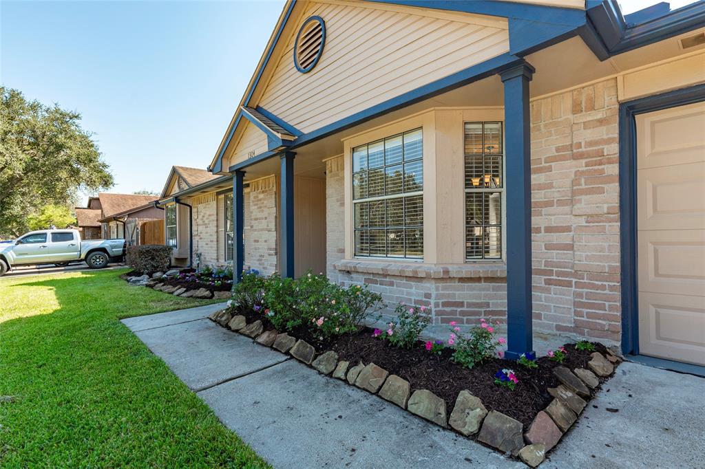 Welcome home to 1304 Piney Woods Dr. Walking distance to Friendswood High School! This 3/2/2 little gem offers pride of ownership! Spacious open concept with granite counters, stainless steel appliances, fresh paint, fresh flower beds/mulch with low maintenance flowering shrubs, front and back sprinkler system, washer, dryer, refrigerator, new window screens, faux blinds on every window, ceiling fans in each room, recent furnace/air handler, ceramic tile flooring in main areas and a huge covered patio. Large back yard with new fence, safe place for kiddos and fur babies to run and play! 2 car garage with painted floor and with floored attic space. Garage door system with 2 remotes. Area pool, play ground and nearby parks. EXCELLENT LOCATION, minutes to I-45/Bltwy. 8, Kemah, NASA and other area attractions! Vacant, spotless and ready to go! Call today for a tour!