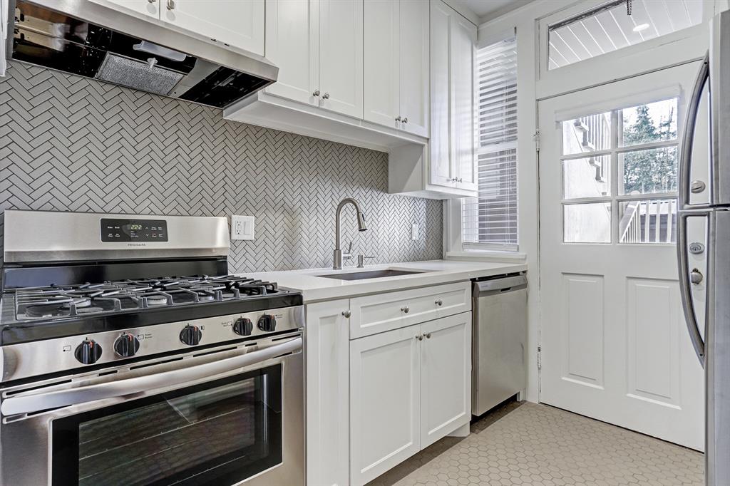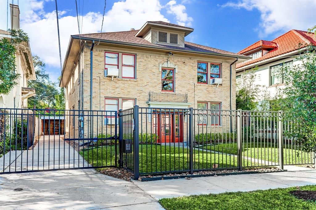 Welcome to quintessential Montrose. This meticulously restored + renovated ground floor unit offers all of the charm of historic Houston with the benefits of abundant modern updates. Built in 1917, this delightful home features hardwood floors, large windows, and beautiful molding throughout. Recent renovations include updated central air conditioning + heating, renovated kitchen with designer accents + stainless appliances, and an updated bath with thoughtful vintage touches. With a large master bedroom and separate study, this unit is bright and roomy with lots of space and soaring 9’ ceilings. In addition to being fully gated, the reserved covered carport features private access to the back door. Additional conveniences include an on-site washer and dryer and unbeatable location just 2 miles to the Medical Center and 1.5 miles to Downtown. Landlord covers water (within reason), trash, exterior pest control, and yard maintenance.