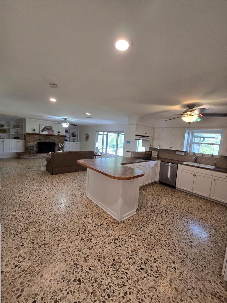 Welcome to Sleepy Hollow living at its finest! This spacious 3-bedroom, 2-bath home with a 2-car garage offers a versatile layout designed for both everyday living and entertaining. Step inside to a formal living and dining combination, perfect for gatherings, along with a comfortable family room and a large game room that provides plenty of extra space for relaxing or hosting guests. The kitchen features solid wood cabinetry with abundant storage and a convenient serving bar that opens to the family room. Enjoy an indoor laundry room for added convenience and take in the serene beauty of the outdoors with a sunroom and family room overlooking the peaceful creek. Situated on a generous lot with mature trees, the property offers shade and privacy. Complete with a screened-in patio, this home is ideal for enjoying the outdoors year-round while taking in the tranquil water views. With space, character, and a prime location, this home is ready for you to make it your own.